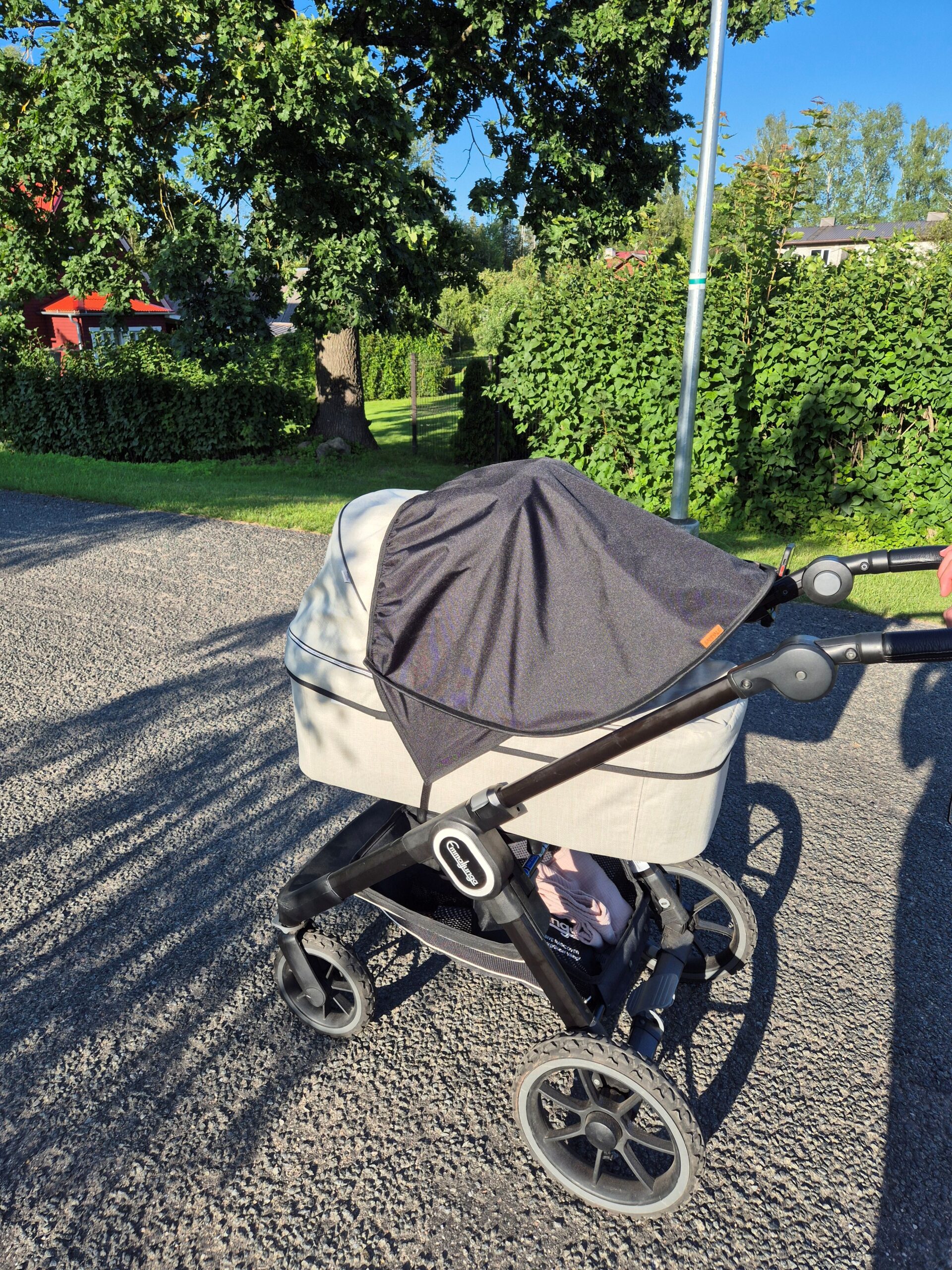 Sigrit: “Väga ilus ja praktiline kaarvarju pikendus. Nord Active plus jalutuskäru osal jäi kaarvari lamavas asendis väga lühikeseks, kuid tänu Sannale kaarvarju pikendusele sai suur probleem lahendatud ning beebi saab nüüd mõnusasti taas õues oma uinakuid teha”