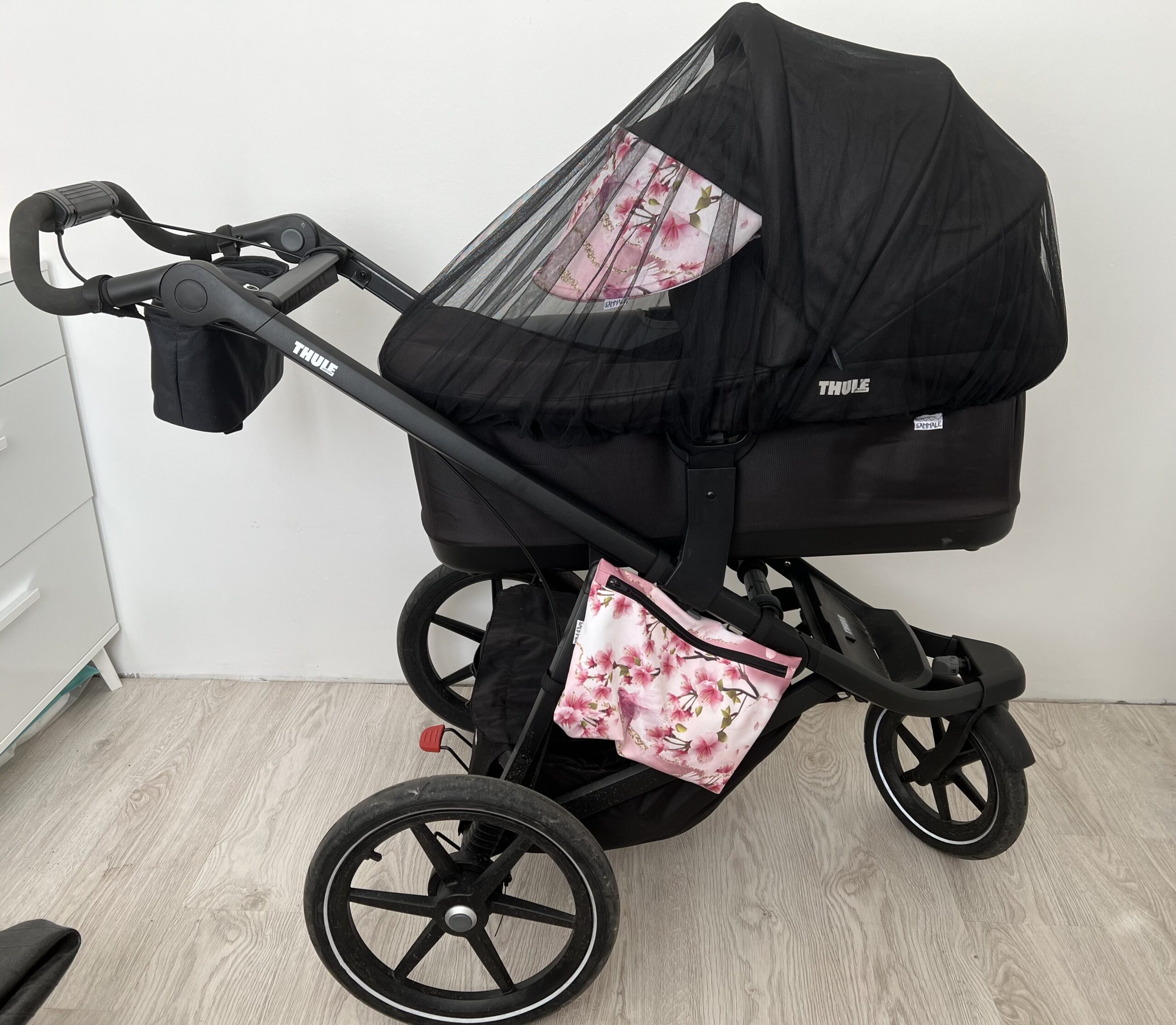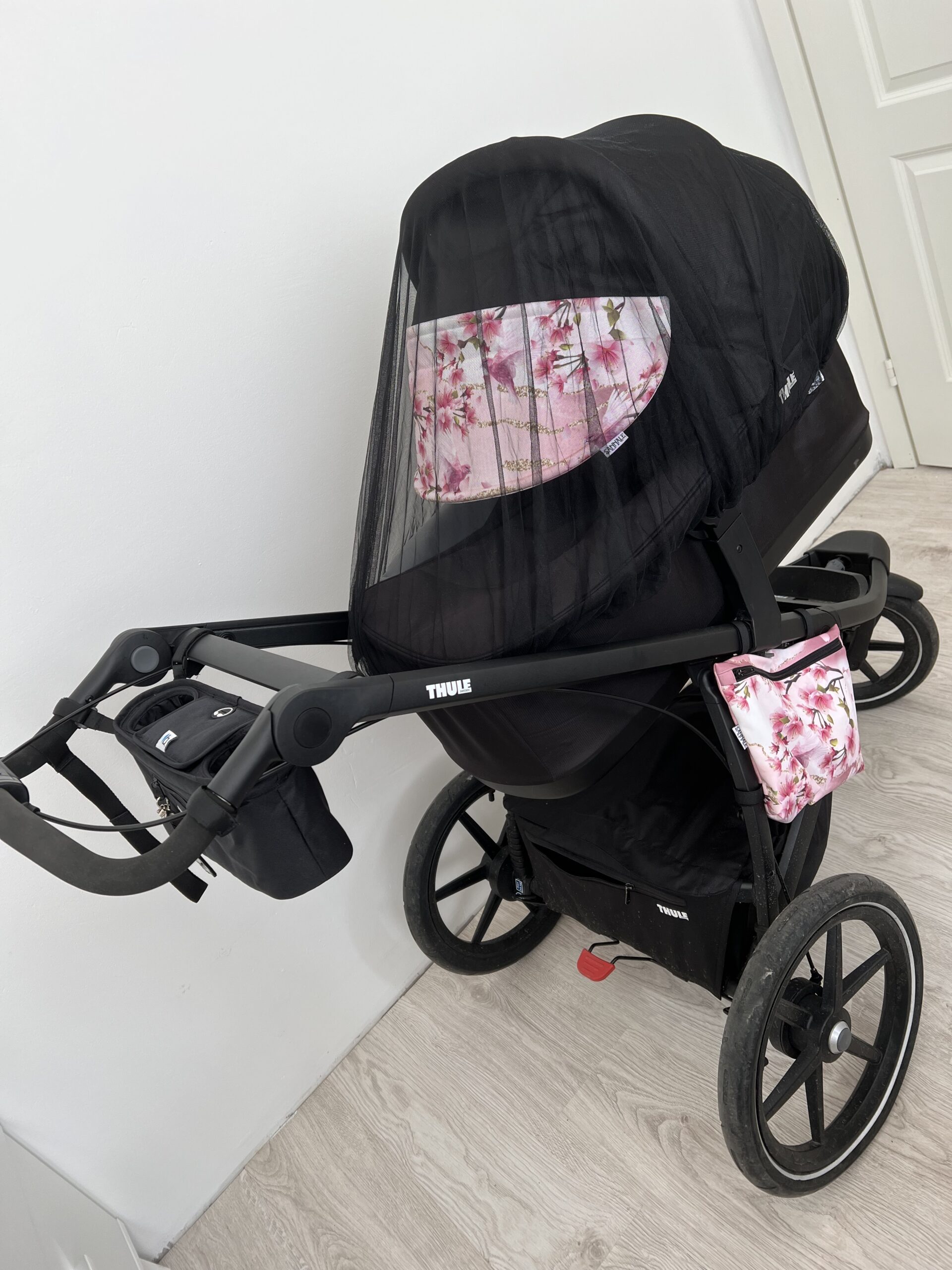 Aire: “Saime ka oma thule urban glide 2 korvi kaarvarju pikenduse kätte. Tõesti megasuper töö!🩷 lapsel kohe palju mugavam suvel vankris magada. Lisana ka veel imeilus roosa kotike. “