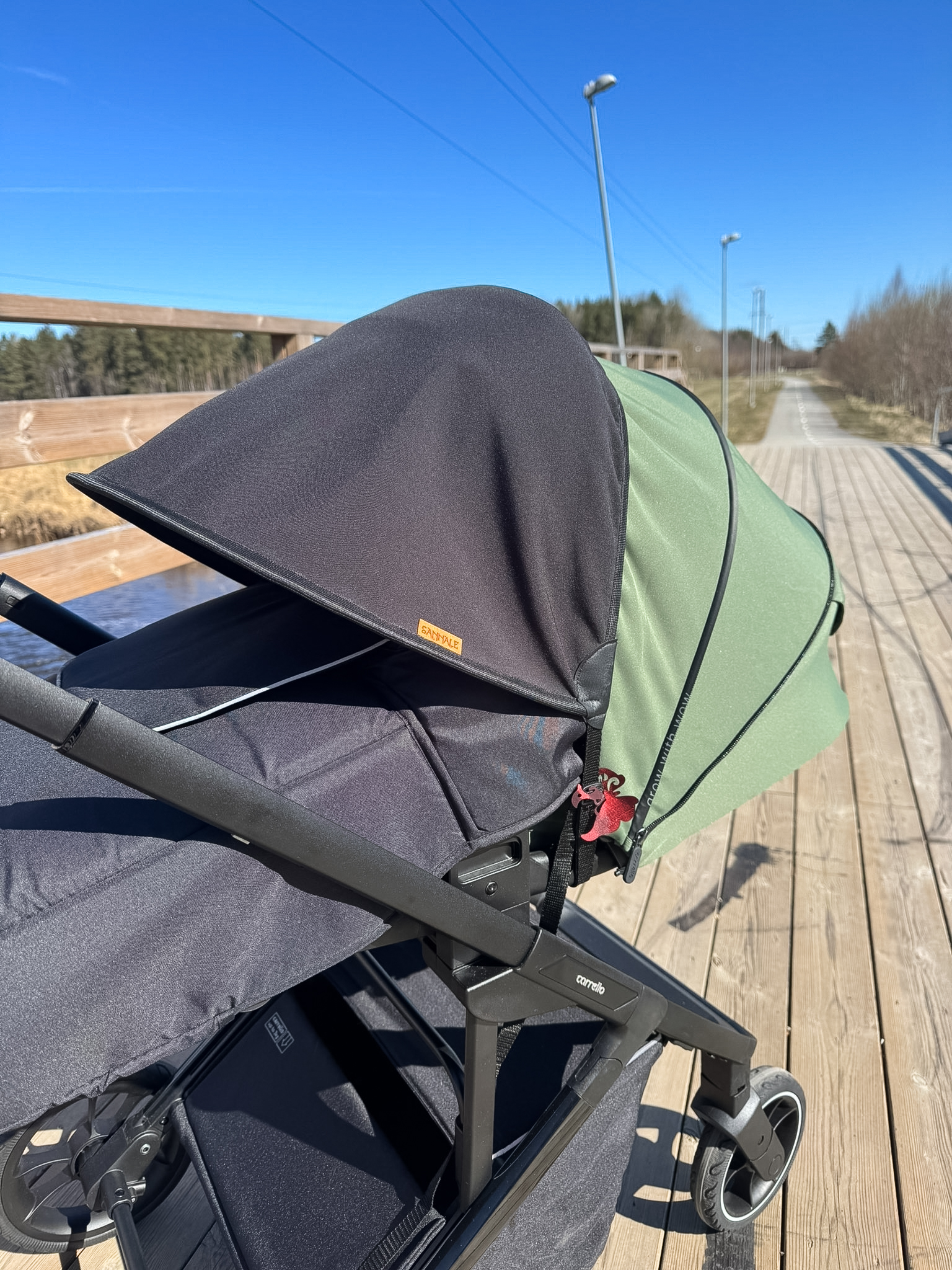 Anne: “Väga vajalik täiendus kärule suveks. Tahestahtmata on täislamavas asendis vankri kaarvari liiga lühike, aga päikesenoka abil saab selle täpselt parajalt pikemaks. Ja noh, sobitub ideaalselt juba eelnevate toodete juurde”
