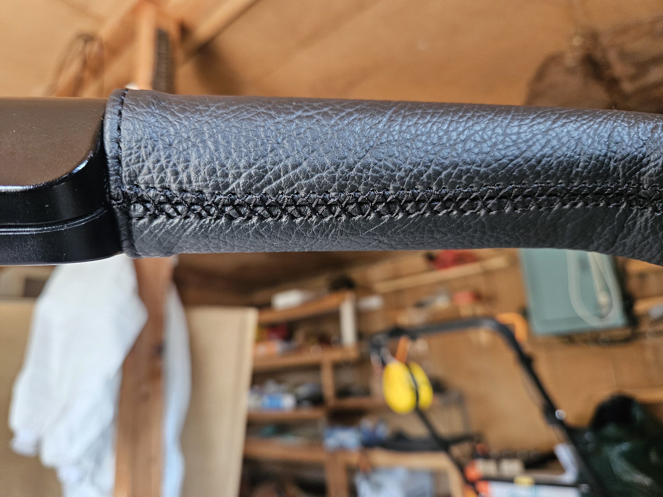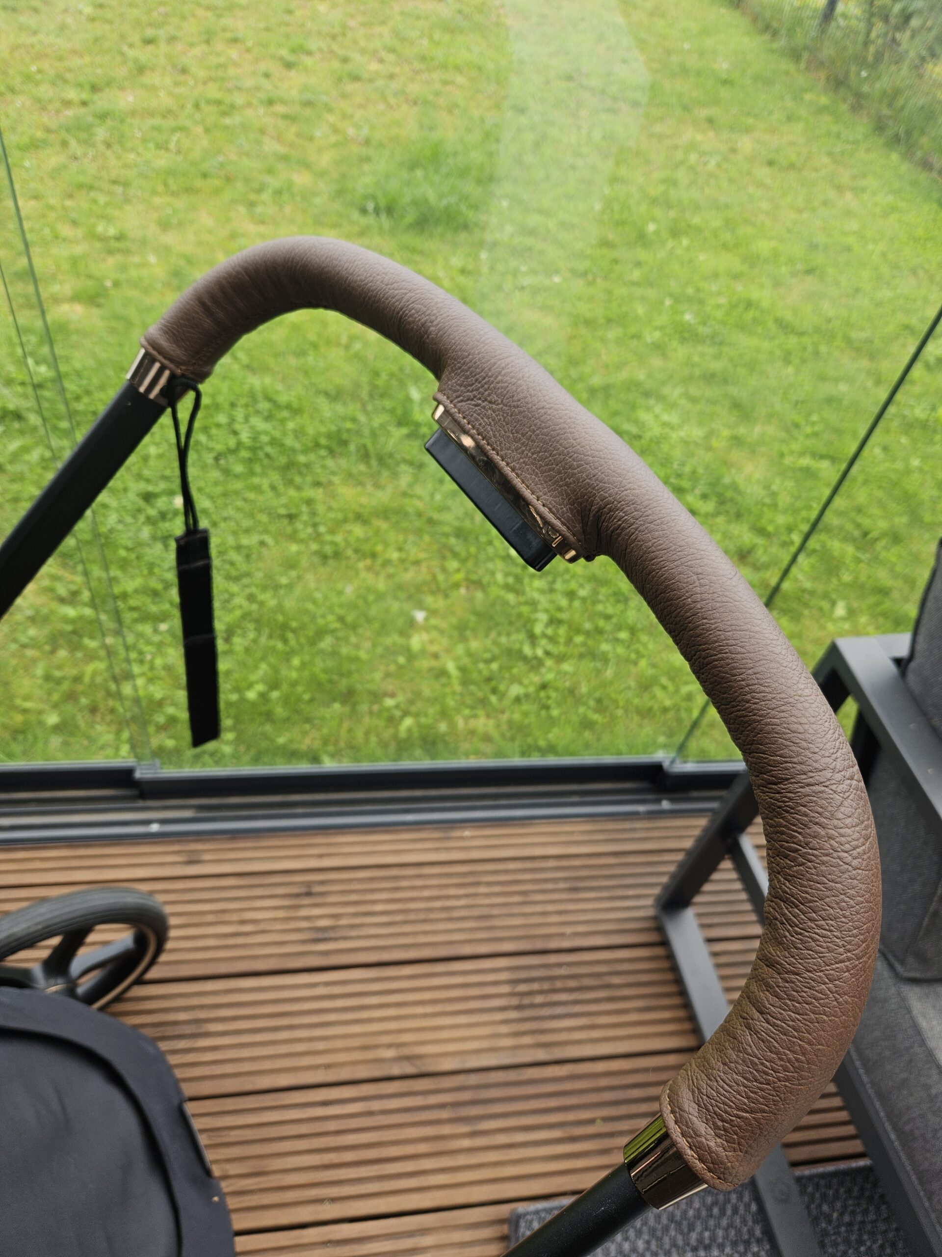 Pille: “Sain lõpuks vankri sangale uue katte peale pandud. Mõõdud sobisid mm täpsusega, naha toon on täpselt sama kui originaalil, super ilus lõpptulemus. Sang on nagu uus. Suur aitäh!!”