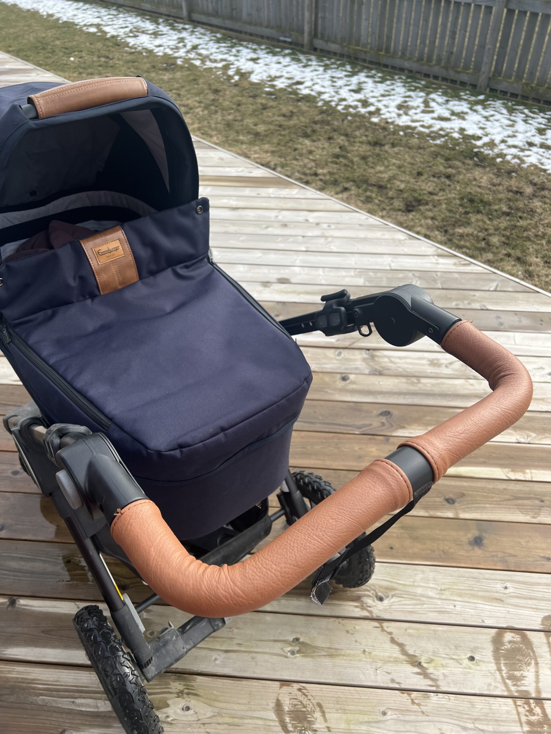 Anett: “Algul tundus see sidumine hirmutav ja raske ning 5 aastat tagasi jäigi ka sellepärast mul tellimus tegemata. Teise lapse ning uue vankriga, tahtsin lükkesangale uusi katteid peale kuna vanad katted olid mõndadest kohtadest katki ja “koorusid” nii-öelda. Tellisin katted, juhendid olid ääretult lihtsad ja koos videotega, mis tegid mõõtmise ja punumise ääretult lihtsaks. Tulemus SUPER! ♥️ Kindlalt tellin ka tulevikus, kui vajadus peaks tekkima! Super tubli ja meeldiv naisterahvas! .”