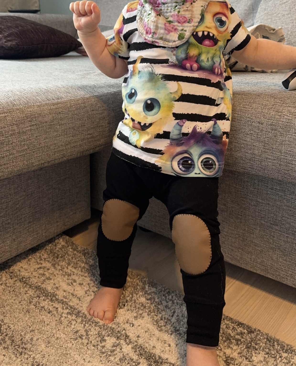 Aire Ots: “Saime proovida neid ülimõnusaid põlvelappe. Kinnitamine pükstele oli väga lihtne juba sellepärast ,et nõelumiseks oli ette tehtud pisikesed augud ning kuna nahk on pehme siis see kohandub ilusti pükste liikumisega lapse põlvedel.