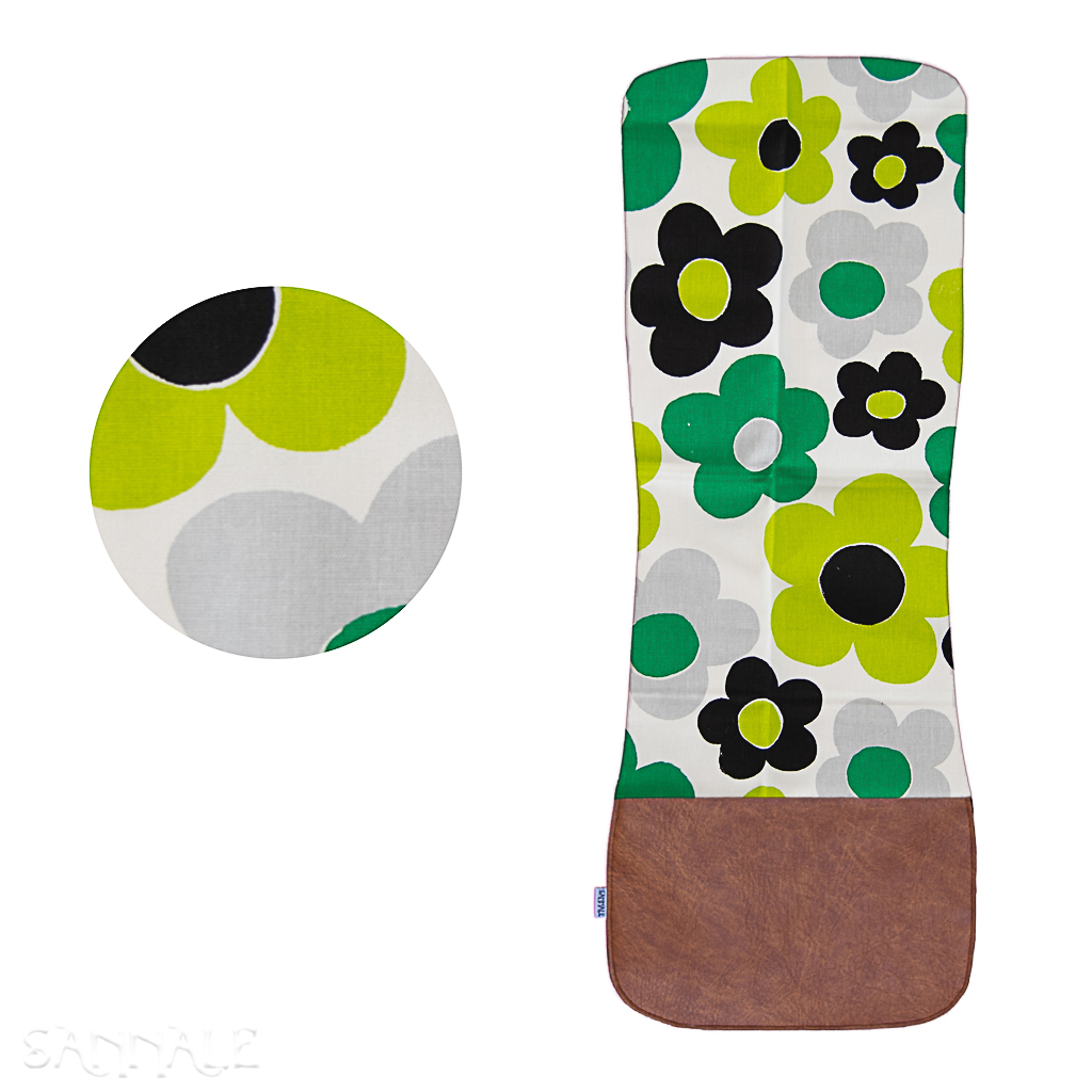 Istmekatte puuvillane kattekangas – rohelised ja mustad lilled valgel taustalSaadavus: 2 laos